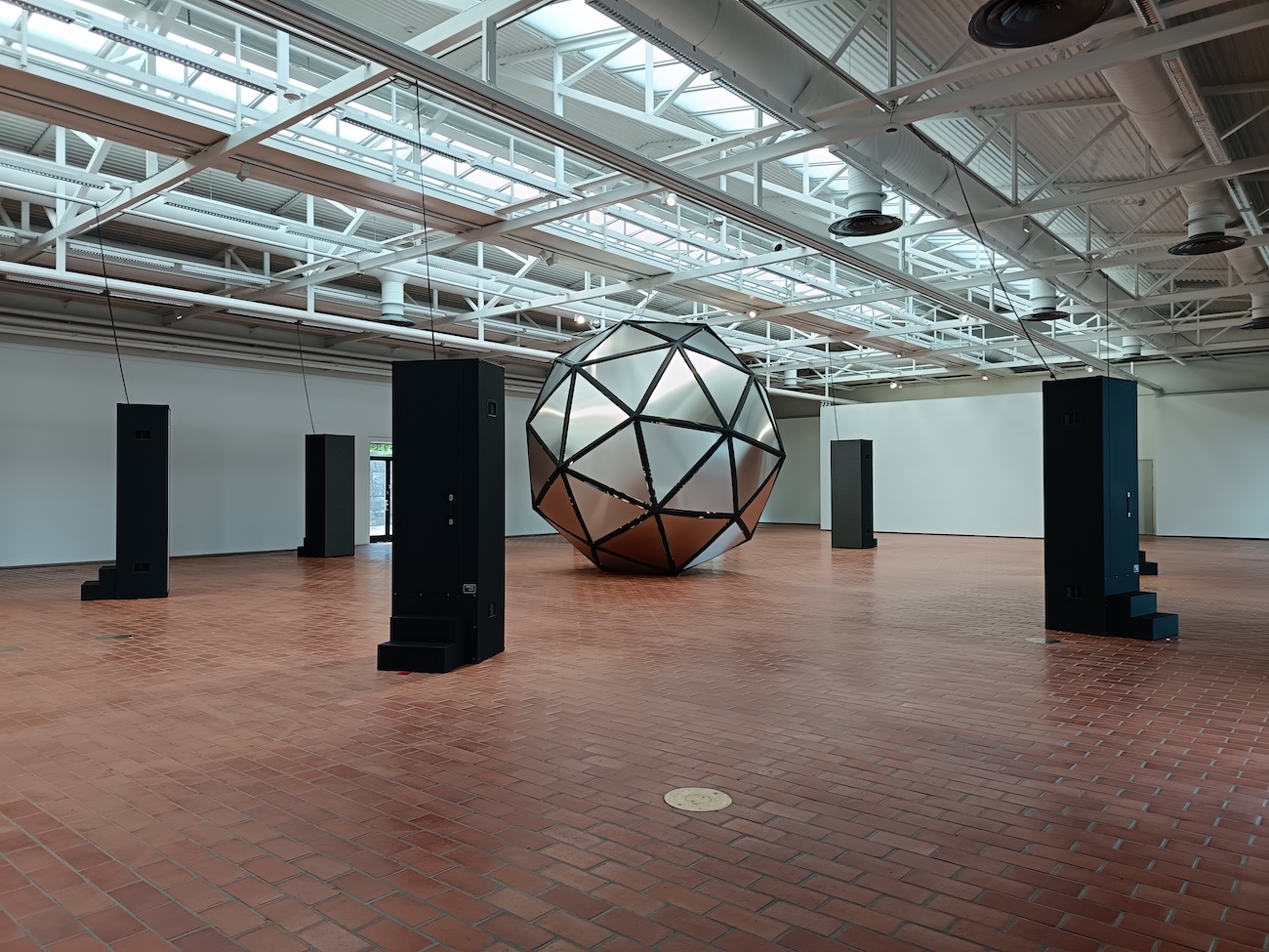 Suuren salin on vallannut porilaisen Circle-yhtyeen teos, jossa meditatiivinen musiikki yhdistyy 60-tahkoiseen pallomuotoon ja kaiuttimien kaltaisiin mustiin pilareihin. Tunnin mittainen mietiskely musiikin ja perusmuotojen äärellä ei koskaan voi olla turhaa.