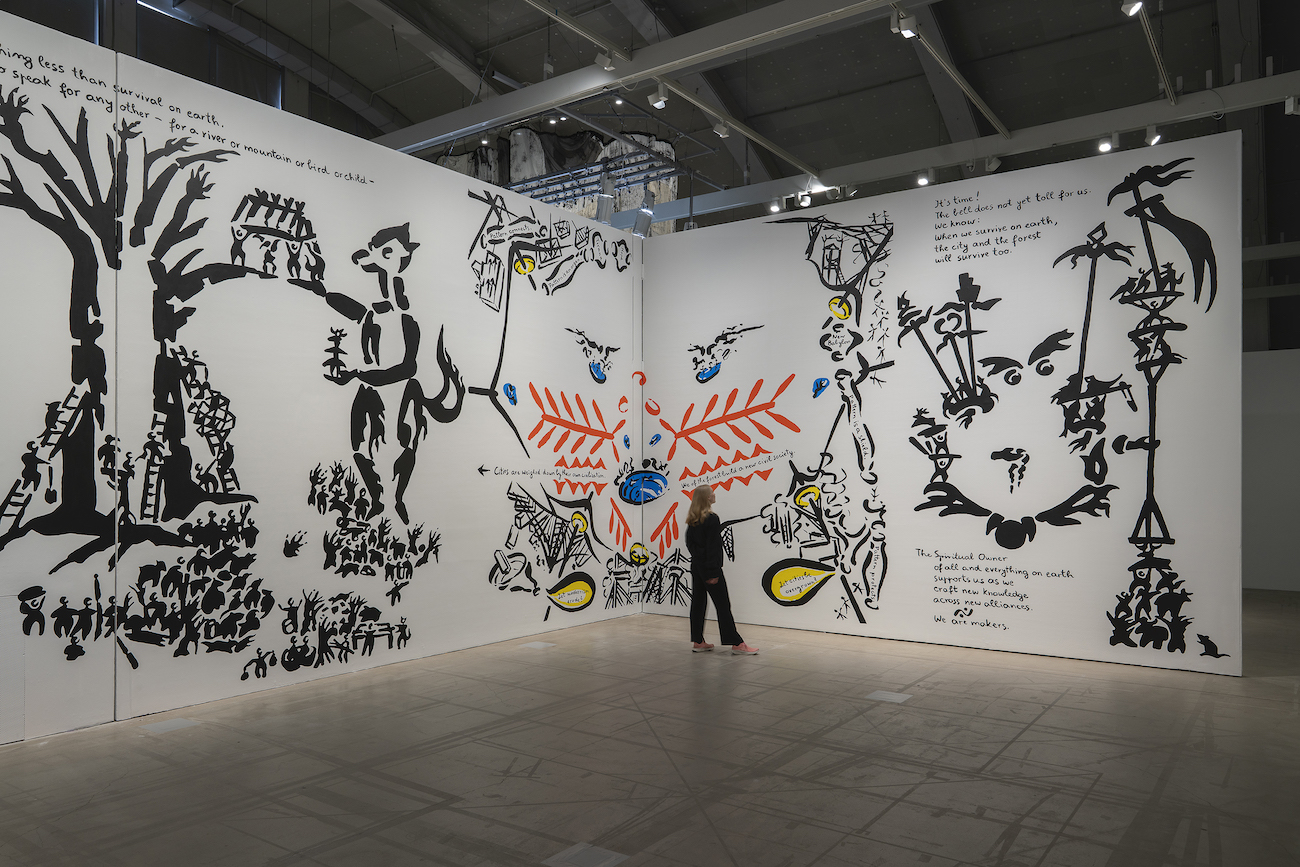 Yhdistelmä alkuperäiskansat–luonto on vaikuttavasti esillä myös Helsinki Biennaalissa, ja molemmissa kokonaisuuksissa huomaa päätyvänsä miettimään, mikä oli ja on oleellinen ero vaikkapa saamelaisen ja länsimaisen valtakulttuurin luontosuhteen välillä. Erot ovat ilmeisen jättimäisiä, mutta mikä oli ja on ratkaisevaa? Mittakaava? Etäisyys? Ymmärrys? Luonnon asema yhteisön ja yksilön identiteetissä?