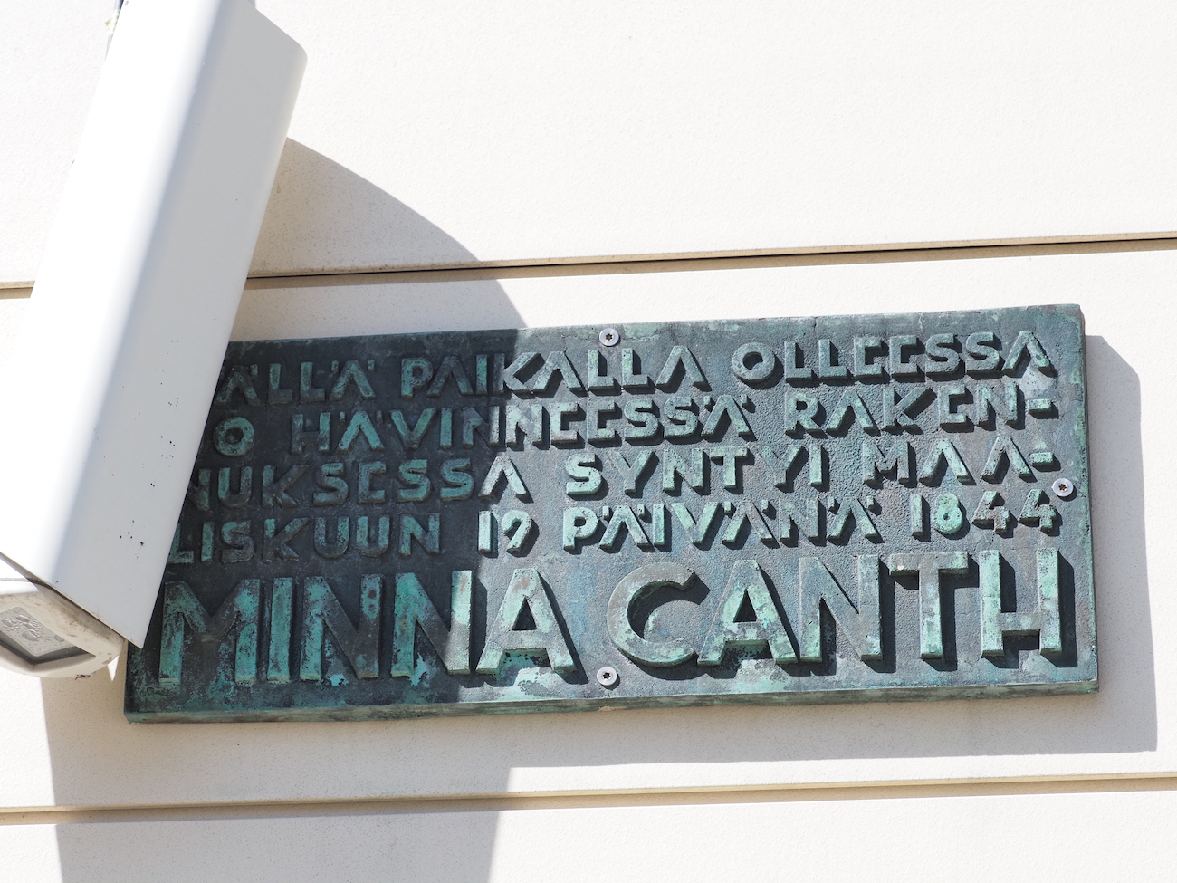 Minna Canthin syntymäkoti on osoitteessa Puutarhakatu 8. Tästä on muistona laatta, joka vähän ikävästi jää valvontakameran varjoon. Kuva: Arto Jalonen