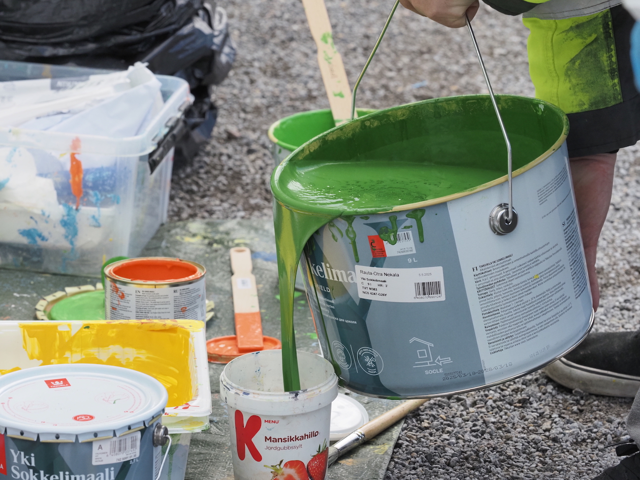 Valmista tuli keskiviikkona 21.5.2025. Sateen vuoksi yksi maalauskerta jäi väliin, ja viimeiselläkin kerrallakin vähän ripsi pisaroita.