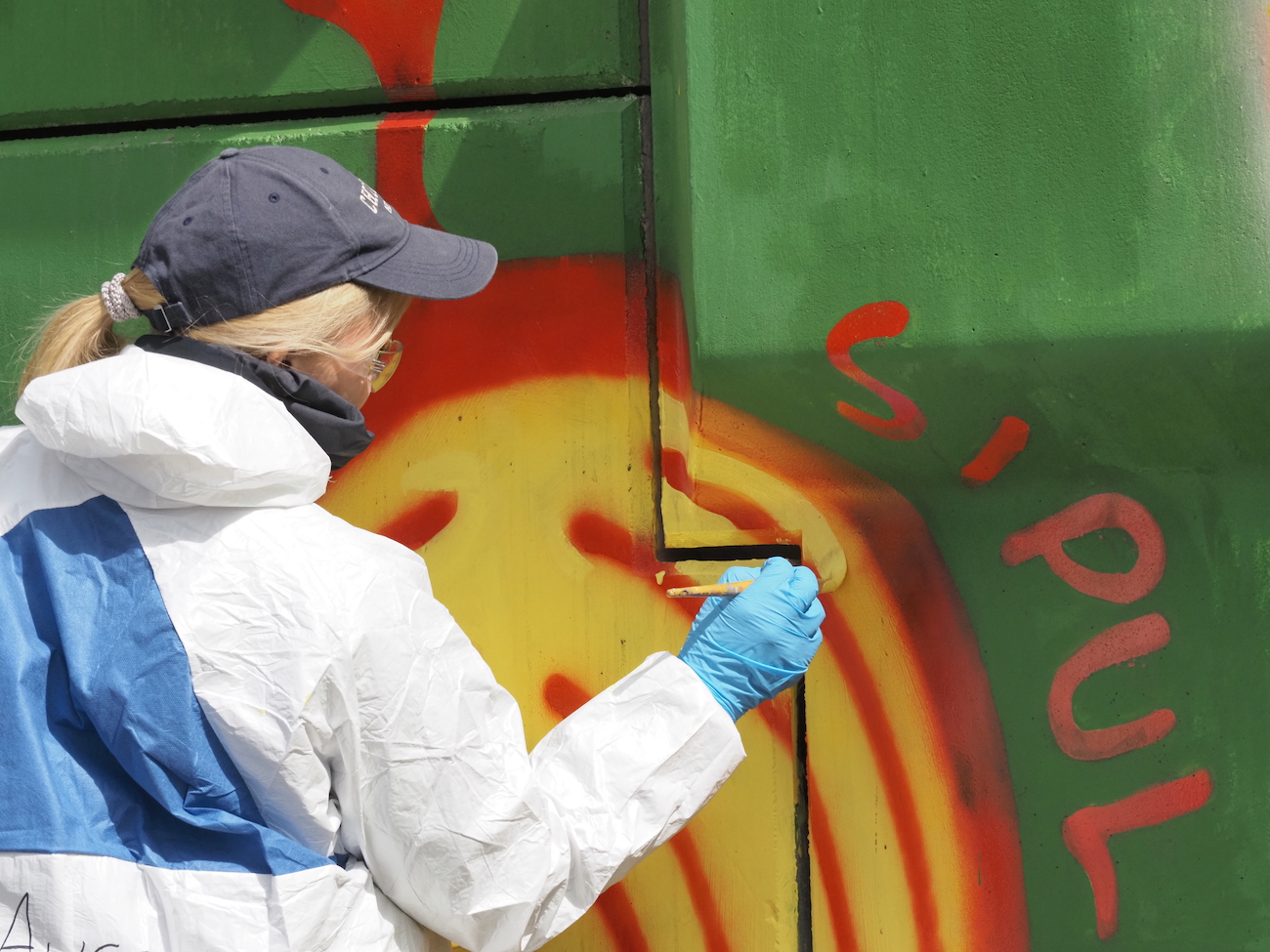 Kulttuuritoimitus seurasi Litukan siirtolapuutarhan vanhemman osan sillan penkereeseen syntyneen muraalin valmistumista.
