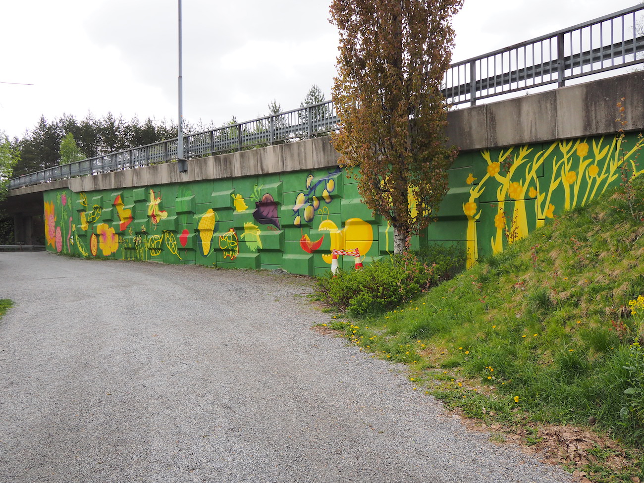 Idea oli siirtolapuutarhalaisten. Yhteistyökumppaniksi löytyi Sara Hildén -akatemia. Toiveena oli puutarha-aineinen muraali, ja se toteutui. Nyt silta kukkii runsaasti.