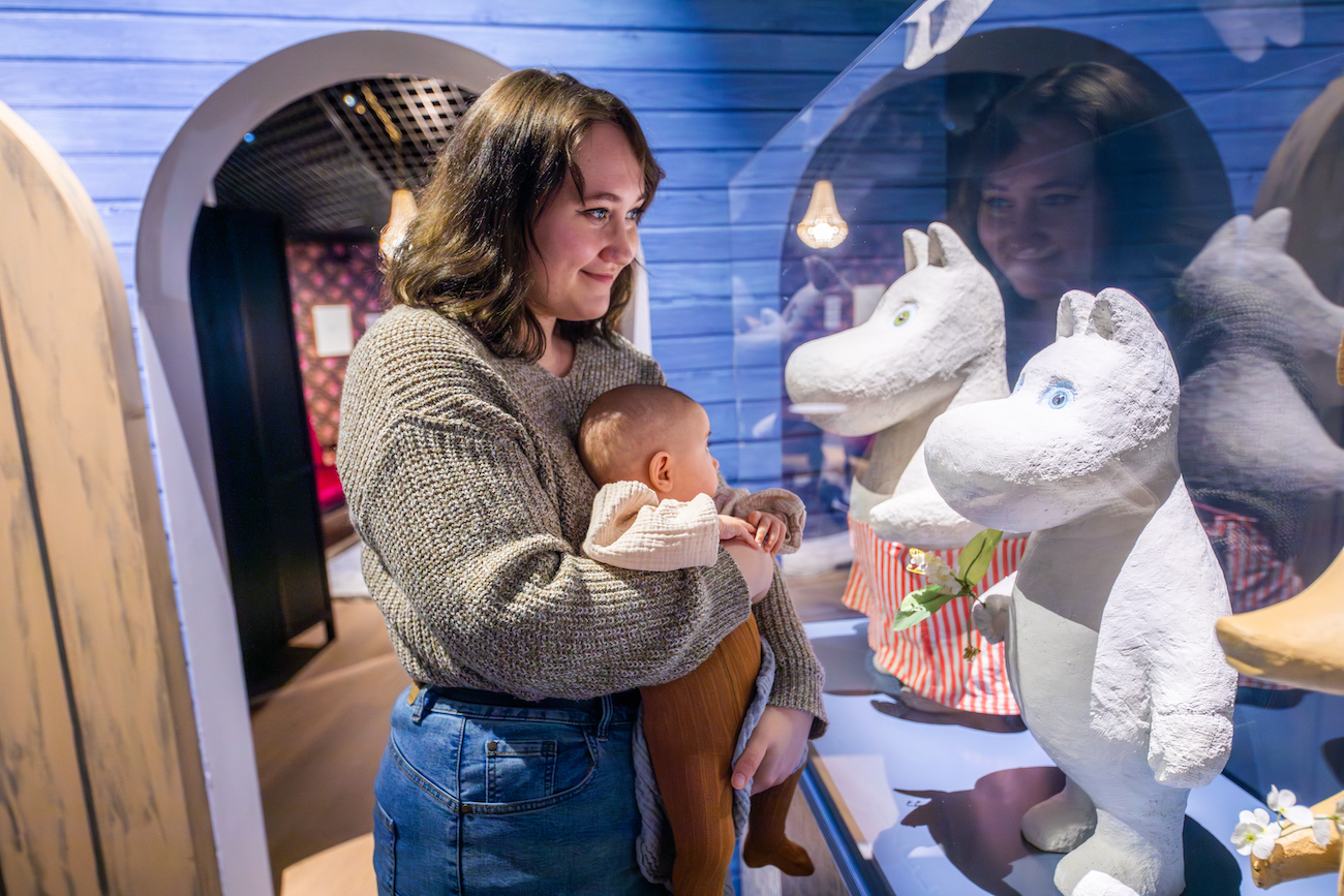 Muumit ovat kaikenikäisten mieleen. Kuva: Heidi Mäenpää / Muumimuseo. Tove Janssonin teoskuvat: © Moomin Characters™