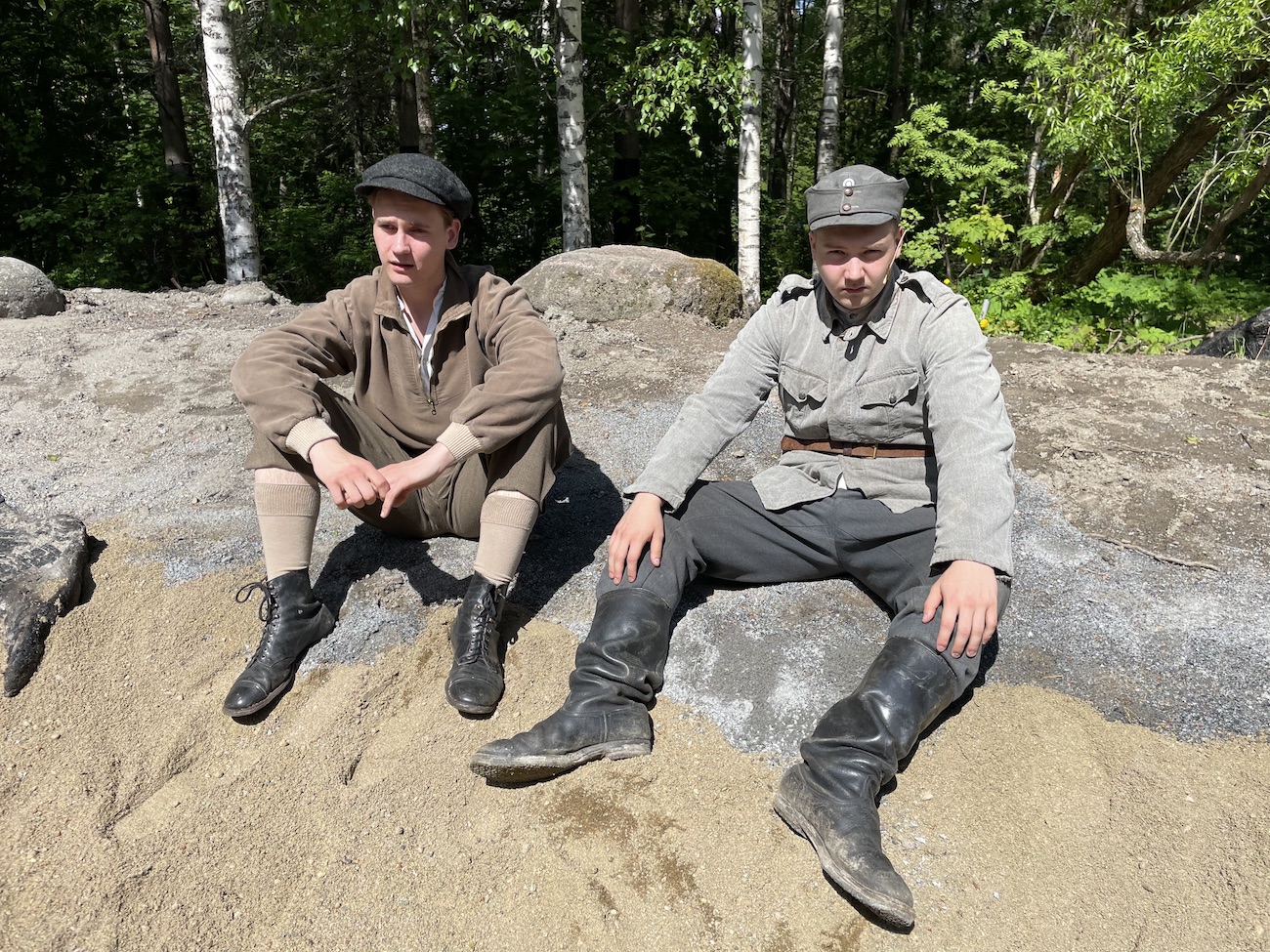 Ukko-Ilmari Majamaa, 19, ja Severi Muje, 20, tekevät Pyynikin kesäteatterin Tuntemattomassa sotilaassa useita pieniä rooleja koko kolmituntisen esityksen ajan. He ovat tutustuneet toisiinsa paremmin vasta 15-vuotiaina teatteriryhmässä, toki heidän perheensä ovat tunteneet toisensa, mutta pojat ovat käyneet eri lukiot ja eivät ole lapsina viettäneet aikaa yhdessä.