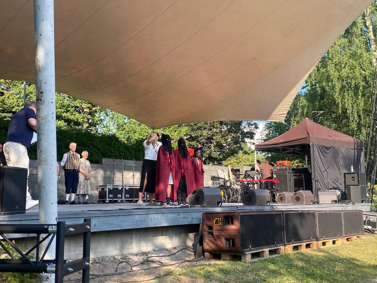 Pietarsaaren kesä sai perinteisen piristysruiskeensa, kun Jaakon Päivät polkaistiin sunnuntaina käyntiin (20.7.2025). Kaupunkilaiset kokoontuivat Koulupuistoon seuraamaan odotettua avajaistilaisuutta. Sunnuntai-ilta oli lähes tukalan lämmin, ja yleisö olikin varannut puiston varjoisimmat paikat hyvissä ajoin ennen ohjelman alkua.