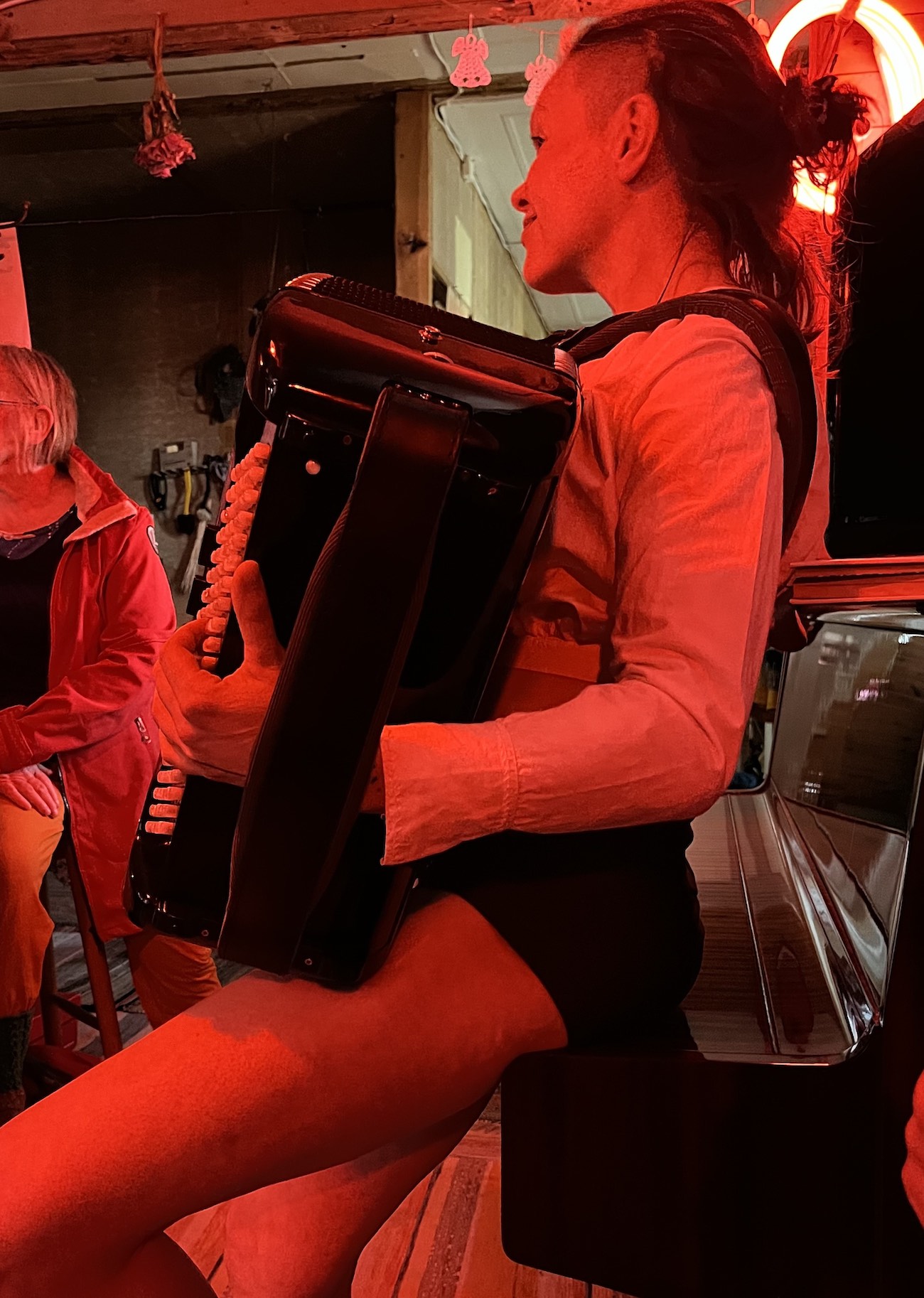 Pääesiintyjä oli Fredrik Hangasjärvi, harmonikkataiteilija ja rikmästare Ruotsin puolelta Pajalasta. Hän teki meihin kaikkiin vaikutuksen, ja häneen oli tehnyt vaikutuksen vanhan ajan tunnelma.