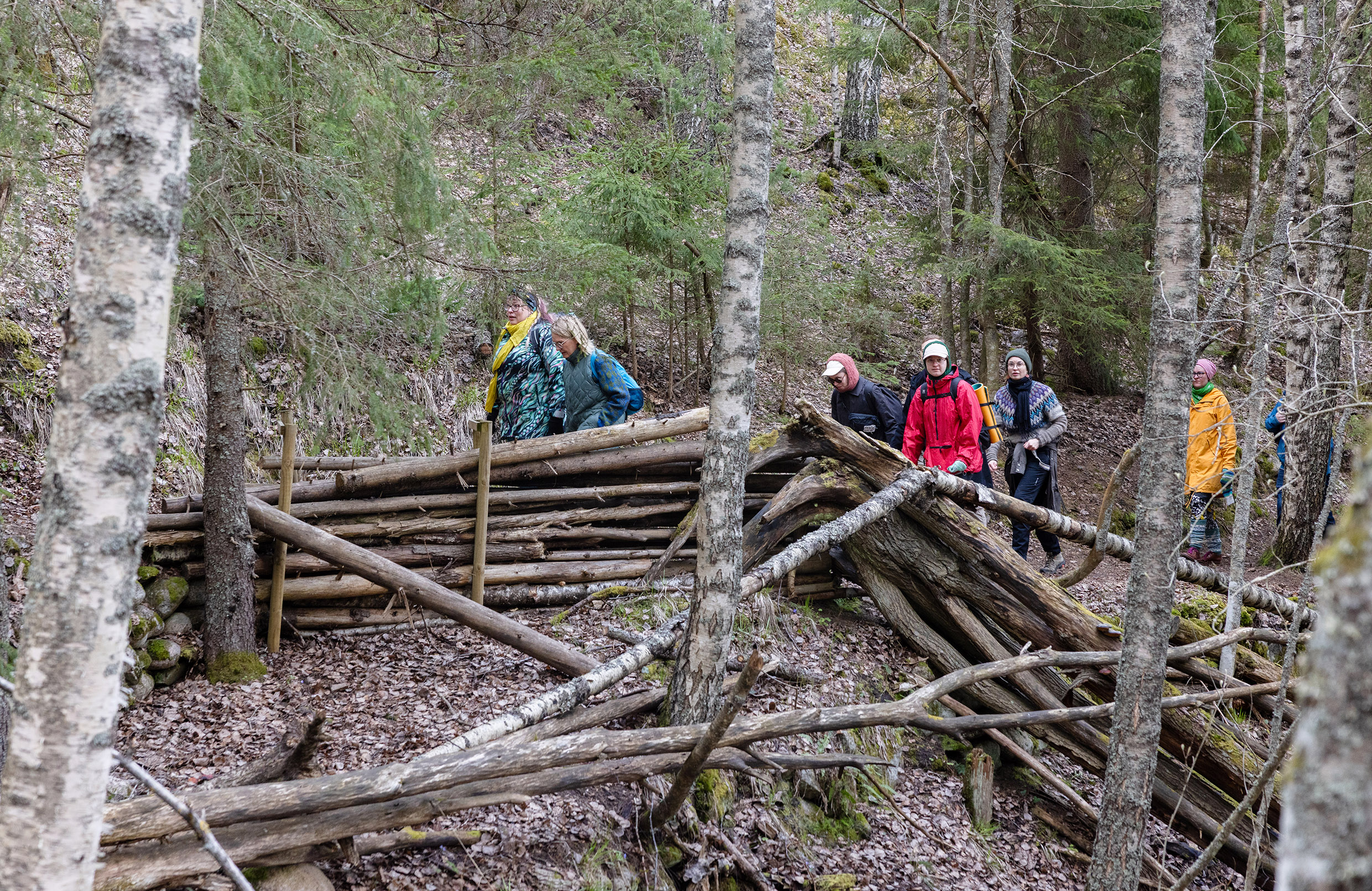 Meille luvataan puolen tunnin bussimatka ja sen jälkeen noin kymmenen minuutin mittainen, helpporeittinen patikointi pitkin metsäpolkua. Se pitää paikkansa. Ilma on virkistävän raikas, ja juuri nyt ei sada.