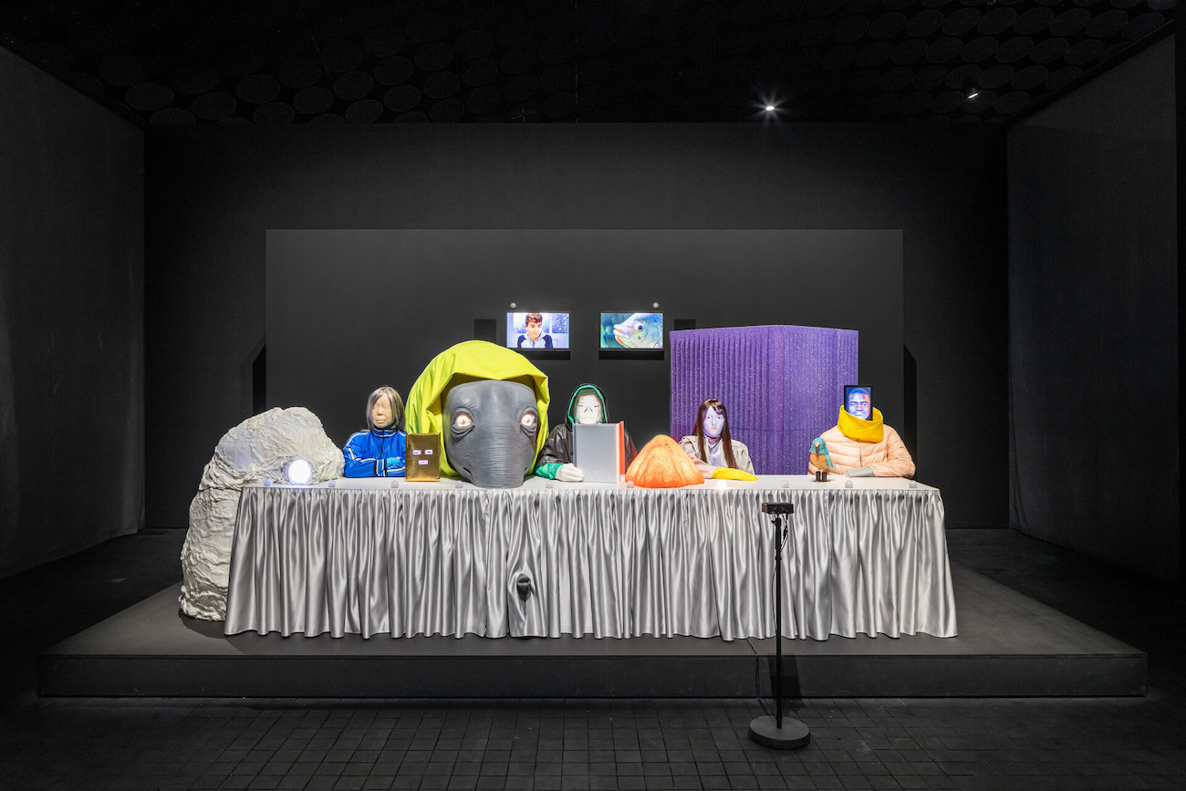 Koomisessa ja samalla vakavassa teoksessa Järjestelmä (2017) katsoja istuutuu katsomoon seuraamaan paneelikeskustelua, jonka oudot osallistujat ovat toisista universumeista. Tulkkina toimii juontaja, joka yrittää epätoivoisesti ymmärtää näiden olentojen viestejä. Lopputuloksena on tuttu tunne: paljon puhetta, mutta vähän ymmärrystä – aivan kuten monissa todellisissa julkisissa keskusteluissa, sillä erotuksella, että vihapuhe ja tahallinen väärinymmärtäminen on jätetty muille areenoille.